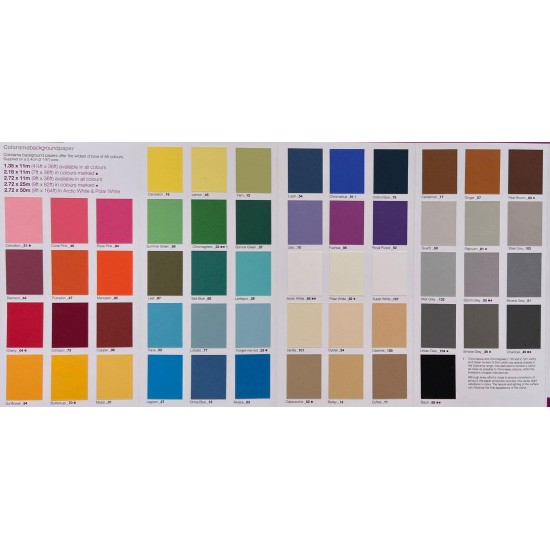 Standart üstün kalite kağıt arka fon. Tek kullanımlık, kırışıksız ve %100 geri dönüştürülebilirdir. Üç farklı boyut ve 55'in üzerinde renk mevcuttur.