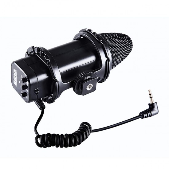 Boya BY-V02, bir stereo kondenser mikrofonu DSLR fotoğraf makineleri, video kameralar ve ses kayıt cihazları gibi birçok cihaza uyumlu video çekimleriniz için idealdir. BY-V02 uzunluğu 151mm ölçülerindedir. Mikrofon şok emici sarsıntı ve kullanım nedeniyle oluşabilecek gürültüye karşı koruma sağlar. Alt kısmındaki bağlantı kızağı ve tripod yuvası sayesinde fotoğraf makinanızın flash kızağına veya 1/4" vidaya monte edebilirsiniz. Standart 3.5mm stereo giriş ile cihazınıza bağlanır