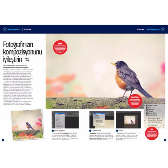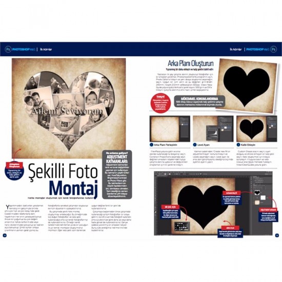 Uzun zamandır planladığımız Photoshop Özel sayı serisinin ilki dopdolu içeriği ile karşınızda. Hazırladığımız bu kaynak ile Photoshop becerilerinize katkıda bulunacağımızı düşünüyorum. Çalışmamız üç bölümden oluşuyor. İlk adımlar bölümünde Photoshop ve Elements kullanarak uygulayabileceğiniz eğlenceli konular hazırladık. Düzenleme bölümünde fotoğraflar üzerinde renk ve ton düzenlemeleri yapabileceğiniz birbirinden güzel konular var. Son olarak Manipülasyon bölümünde ise hayal gücünüzü kullanarak ve farklı görselleri bir araya getirerek hazırlayabileceğiniz projeler mevcut. Mümkün olduğunca sade dille anlatmaya çalıştığımız konuları uygulamaya başladıkça Photoshop'un ne kadar derin bir program olduğunu göreceksiniz. Bu sizi korkutmasın. Kendinize zaman tanıyarak yeteneklerinizi çok daha iyi bir seviyeye çıkarmanız hiç de zor değil. Şimdi bilgisayarınızı hazırlayın ve Photoshop ile saatler geçirmeye hazır olun!