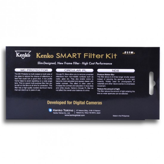 Kenko Smart Filter Kit seti 3 filtreden oluşmaktadır: Protector, Circular PL ve ND8.