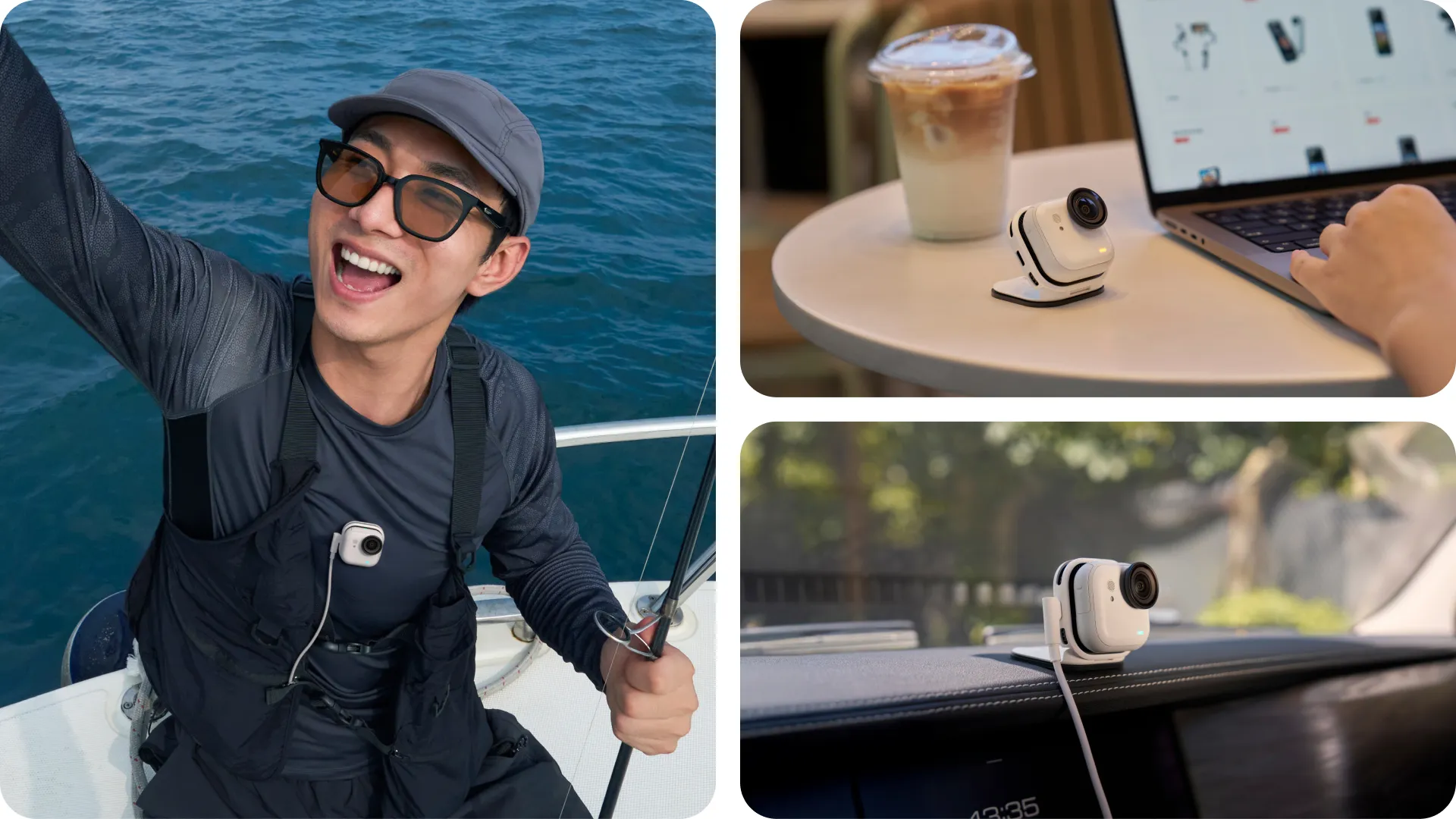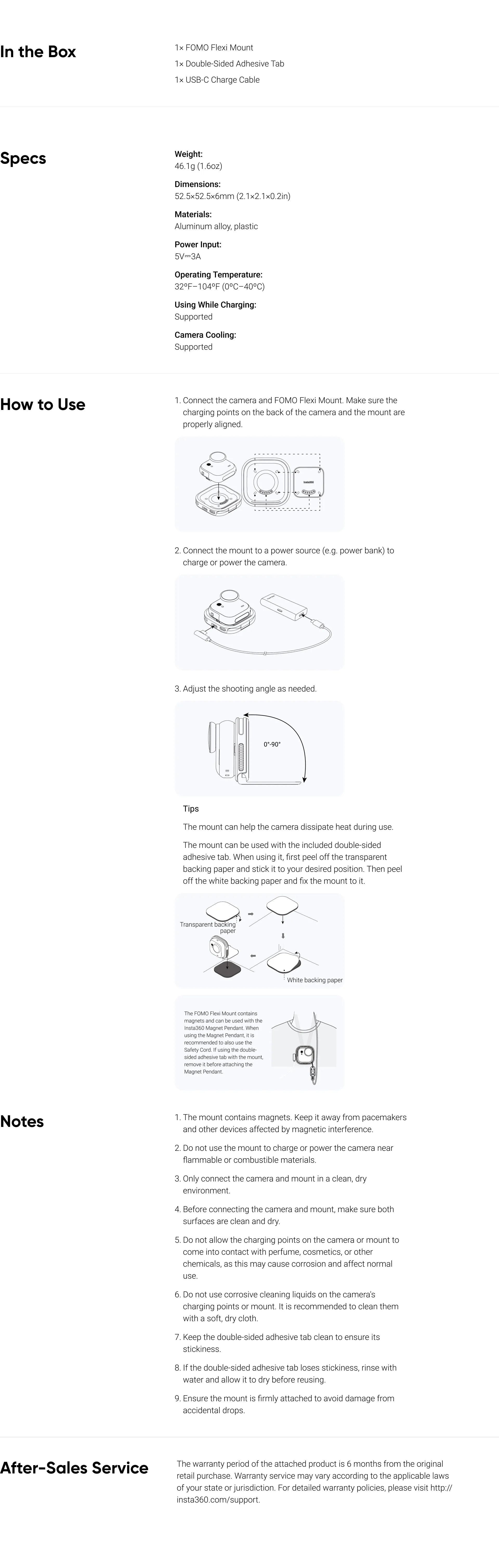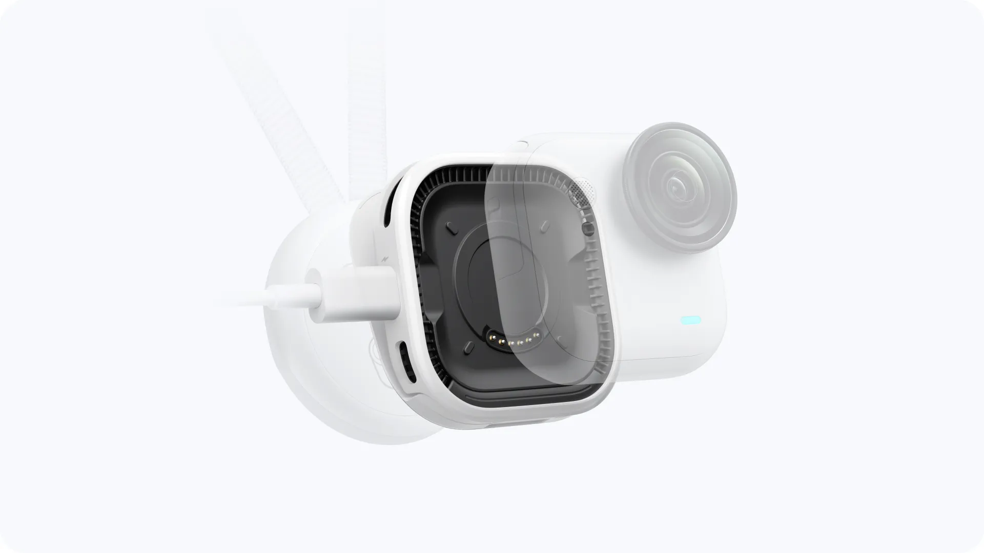 Magnetic pogo-pin base locks your standalone cam in place, with a USB-C port to connect a charger or power bank for an ultra-long run time.