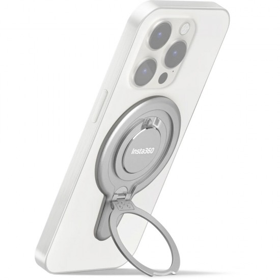 Insta360'ın Flow 2 Pro için Manyetik Kickstand Telefon Tutucusu, kompakt bir kickstand çözümü için herhangi bir MagSafe etkin iPhone'a manyetik olarak bağlanır. Bu tutucu, herhangi bir ek donanım olmadan sorunsuz bir şekilde Insta360'ın Flow 2 Pro'suna bağlanır. N52 sınıfı mıknatıslar, tutucunun telefonunuza ve tutucunun Flow 2 Pro'ya güçlü bir şekilde bağlanmasını sağlar. 360° dönebilen metal halka standı, telefonunuzu dikey veya yatay modda destekler. 0,44" boyutundaki tutucu, telefonunuza minimum hacim katarak bunu günlük bir aksesuar haline getirir. Telefonun yüzeyini korumak ve yeniden satış değerini korumak için bir silikon ped dahildir.