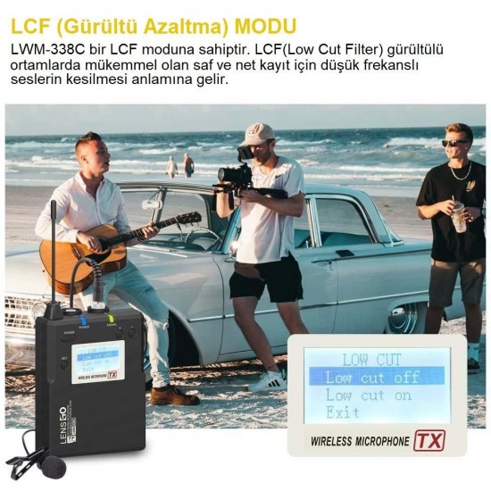Lensgo 338C; Nikon Canon Sony DSLR fotoğraf makineleri, video kamera, iPhone Android akıllı telefon, iPad ve daha fazlası ile uyumlu bir kablosuz yaka mikrofonu sistemidir. Kablosuz yaka mikrofonu, YouTube canlı yayın, Video kaydı, Ses kaydı, Vlog kaydı, Röportajlar, Kısa film kaydı, Podcast'ler, Düğün, Mobil gazeteciler, İçerik oluşturucular, ENG ve EFP vb. için en iyi seçimdir.