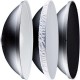 Multiblitz Probeau Beauty Reflektör Seti, üç opsiyonel efekt içeren bir reflektör setidir. Reflektör, bir petek filtre, deflektör ve difüzör ile birlikte sağlanır. Reflektörün kendisi, bir renk nüansını korurken ışığı dağıtır. Sağlanan petek ızgarası saçılmayı sınırlarken, difüzör saçılımı daha yumuşak efektler için güçlendirir. 44 cm'lik geniş çap, yüksek ışık çıkışı sağlar. Ek olarak, bu Multiblitz reflektörde kullanışlı bir hız halkası bulunur. P-bayonet bağlantısı, reflektörü çeşitli Multiblitz stüdyo flaş ünitelerine bağlamayı mümkün kılar.