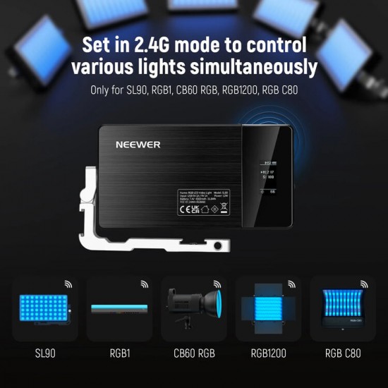 - Yeni Infinity Bağlantı Teknolojisi - Yeni NEEWER Infinity bağlantı teknolojisi, bir ışığı ana ışık olarak ayarlamayı destekler; ana ışığa yapılan herhangi bir ayar, aynı 2.4G grubuna ayarlanmış tüm alıcı ışıklara eş zamanlı olarak uygulanır (1 grupta 255 cihaza kadar kullanılabilir). Yeni NEEWER SL90, RGB1, RGB C80, RGB 1200 ve RGB CB60 modelleriyle uyumludur.