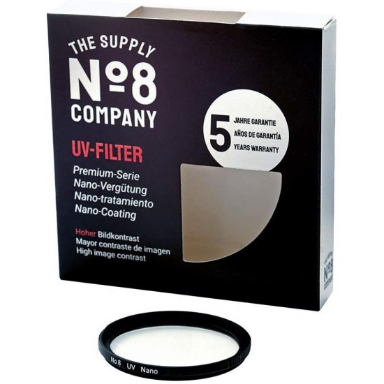Hem film hem de dijital kameralarda kullanılabilen No8 Nano UV Filtre, çoğu zaman fotoğrafların dış mekanda görünmesine neden olan ultraviyole ışınlarını emer. İstemeden dağınık ve belirsiz. Manzara çekimleri için olduğu kadar dağda ve deniz kenarındaki çekimler için de idealdir. Yüksek derecede kaplanmış UV optik cam, bundan sorumlu UV ışınlarının spektrumunu emer, böylece görüntüler daha net ve keskin görünür ve maksimum iletim (ışık geçirgenliği) ile sis zayıflar. Bu çok yönlü filtre, su tutmaz ve çizilmeye karşı dayanıklıdır ve siyah beyaz ve renkli fotoğraflar için uygundur.