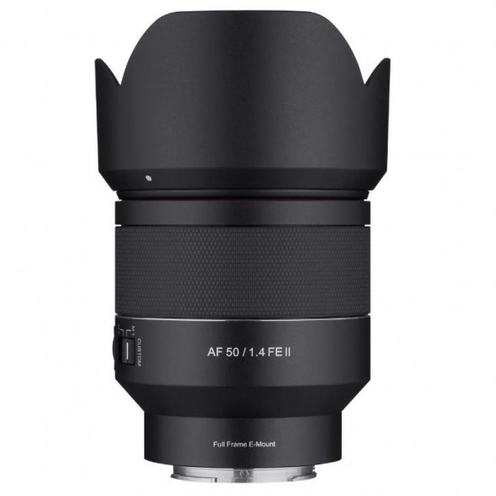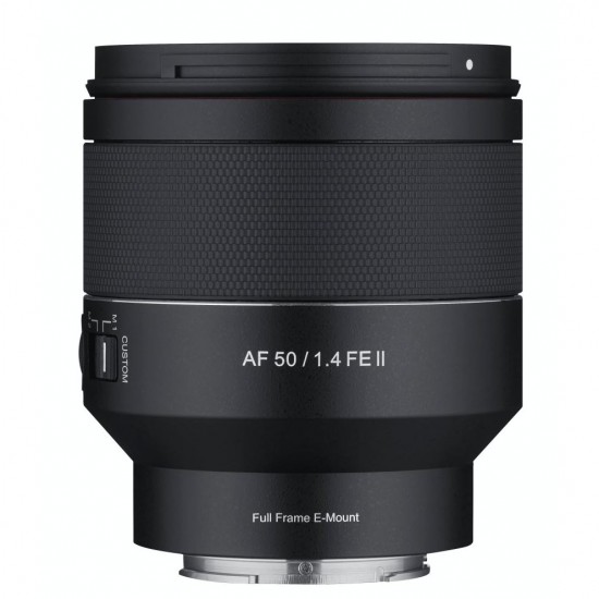 Samyang AF 50mm f/1.4 FE II Lens, Sony FE yuvasıyla uyumlu geniş diyafram açıklığına sahip standart 50mm odak uzaklığına sahip lensler arasında en küçük (88,9 mm/3,5 inç uzunluk) ve en hafif (420 g/14,8 oz ağırlık) olanıdır.