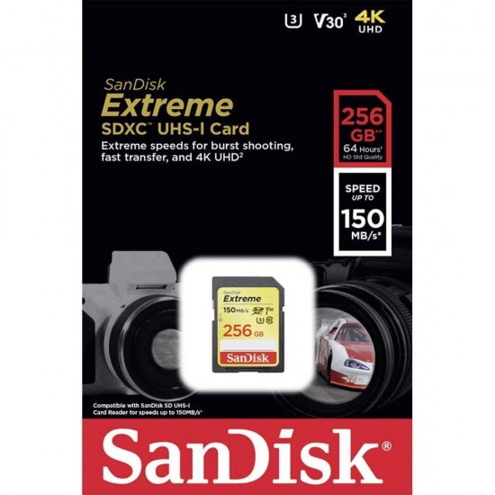 Sandisk 256 GB Extreme SDXC Class 10 Kart 150 mb/s