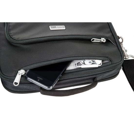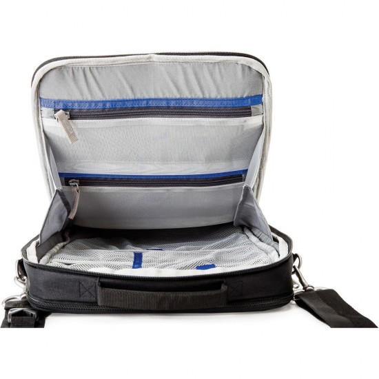 Siyah Think Tank Photo My 2nd Brain Tablet Kılıf, ayrı ayrı tablet ve akıllı telefon ceplerine sahip kompakt, dolgulu bir taşıma çantasıdır. Tablet cebine bir iPad veya benzer boyuttaki başka bir tablet sığabilirken akıllı telefon cebine bir iPhone veya benzer boyuttaki akıllı telefon sığabilir. Akıllı telefon cebi de pelüş astarlıdır ve kullanışlı bir kulaklık kılıfı ile donatılmıştır. Aksesuarlarınızı düzenli tutmak için çantada şeffaf fermuarlı cepler ve file çantalar içeren geniş bir aksesuar bölmesi bulunur. Kasa ayrıca poliüretan kaplamalı suya dayanıklı bir dış yüzeye ve ayarlanabilir, kaymaz pedli çıkarılabilir bir omuz askısına sahiptir. Omuz askısında ayrıca hacimli kulaklıklar, su şişesi, beyzbol şapkası, güneş gözlüğü kılıfı veya diğer kişisel eşyaları takmanıza olanak tanıyan çift çapraz bir toka bulunur.