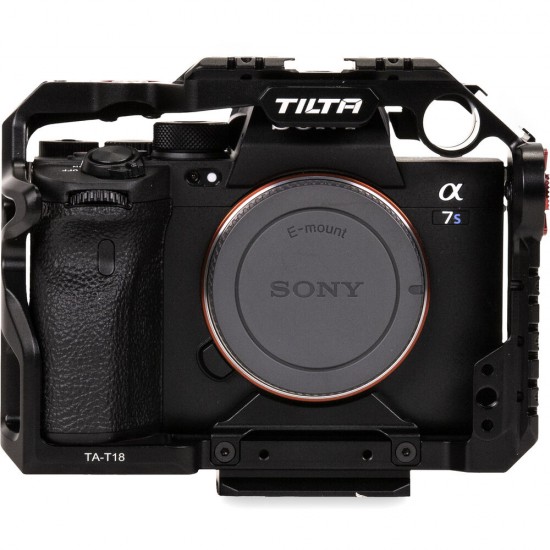 Siyah renkte sağlam dört taraflı tasarıma sahip Sony a7S III için Tilta Tam Kamera Kafesi iki adet ayakkabı yuvası sağlar; bir adet 15 mm çubuk bağlantı noktası ve isteğe bağlı tutma yerlerinin takılması için M6 dişli ARRI standardında bir rozet. Kafesin içine yerleştirilmiş çubuk bağlantı noktası, birlikte verilen Allen anahtarı kullanılarak bağlantı noktasının arka tarafındaki entegre bir vidayla sıkıca sabitlenir. Kafes ayrıca aksesuarlar için 1/4"-20 ve 3/8"-16 montaj dişleri sunar ve kafesin alt kısmında kameranız için en uygun dengeyi bulmanızı sağlayan birden fazla 1/4"-20 diş bulunur tripodlara, gimballere ve diğer desteklere monte ederken.