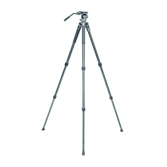 Baş, sol ve sağ taraflarda bir su terazisi ve pan kontolü içerir (sadece bir tutamak dahildir). Eğim aralığı -45 ila 90 derecedir ve 360 ° döndürme özelliğine sahiptir. Kolay kontrol edilen kilitlere sahip üç bölümlü karbon ayaklar, güvenli bir platform sağlar ve kaymaz pabuçlar, tripodun hem sert hem de yumuşak yüzeylerde kullanılmasını sağlar.